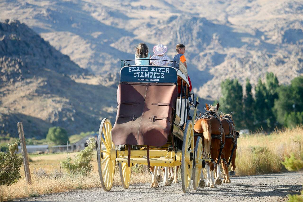 The Snake River Stampede began in 1913 when a bucking contest was added as a feature to the Nampa Harvest Festival. Over the years, the bucking contests became more and more popular with the addition of events like calf roping and bulldogging. In 1937, the rodeo broke away from the Harvest Festival, was sanctioned by the Rodeo Cowboys Association as a professional rodeo and became the Snake River Stampede (SRS). A decade later, the SRS purchased the mud wagon from the Matheson estate to be used in parades and for transporting rodeo royalty, functions it still is used for today. The wagon appears in every Stampede performance, rides in ten parades per year, and is displayed without horses in another fifteen events throughout the area.